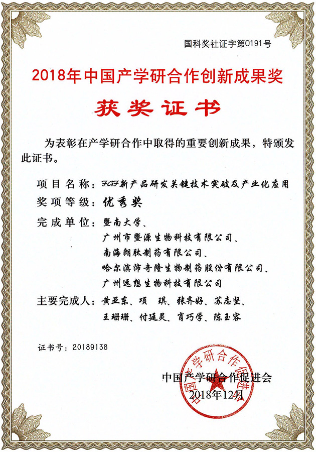 产学研合作创新技术成果奖优秀奖-FGF新产品研发关键技术突破及产业化应用
