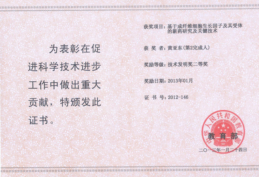 教育部技术发明二等奖-基于成纤维细胞生长因子及其受体的新药研究及关键技术